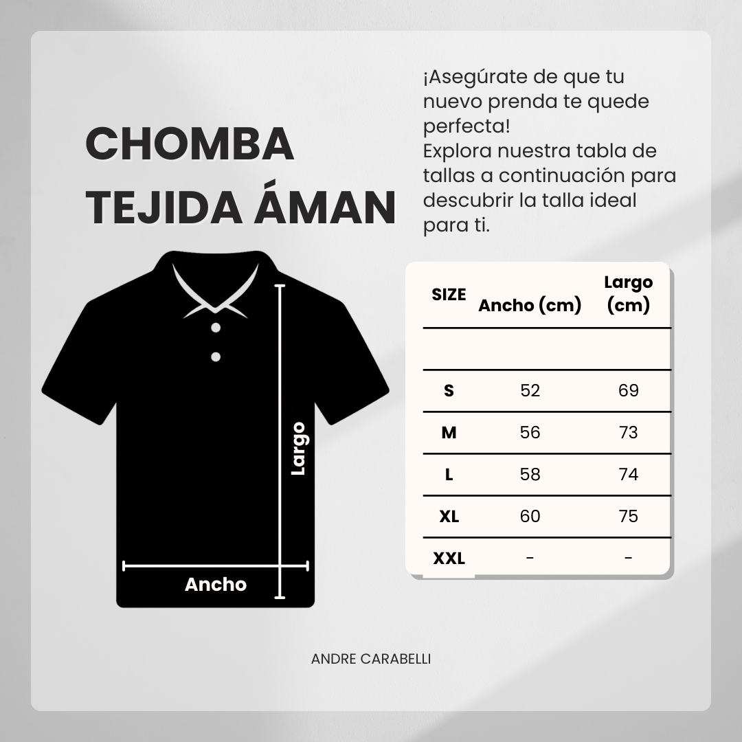 La Chomba tejida Áman destaca por su tejido delicado y ligero, que brinda una sensación de frescura ideal para los días cálidos. Su diseño sencillo y elegante permite combinarla fácilmente con distintos estilos, aportando un toque de sofisticación natural.